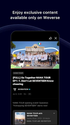 Kada ka bari ayyukan masoyanka su shuɗe! Tare da Collection, zaka tattara alamomin girmamawa da kayan tattarawa na dijital, ciki har da hotuna da bidiyo, ta hanyar kammala ayyuka daban-daban. Bincika alamomin da ka samu da kuma waɗanda zaka iya samu don kowane al'umma da ka shiga. Weverse kuma yana ba da abun ciki na musamman da banbancin media, daga abubuwan hukuma zuwa waɗanda aka keɓe ga Weverse kawai, duk tare da fassarar harshe. Ka more fa'idodi da abubuwan da aka keɓe ga membobi na hukuma kawai. Don ƙarin kusanci, akwai zaɓuɓɓukan biyan kuɗi na wata-wata kamar [BTS behind] da [TXT behind], waɗanda ke kawo maka abubuwa na musamman.